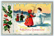 1908 Christmas Snowman Children Holly Berries Winter Snow Embossed Postcard