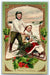 1910 Christmas Boy Girl Doll Sled Holly Berries Winter Snow Embossed Postcard