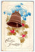 1912 Christmas Greetings Holly Bells Pansies Flowers Embossed Gel Postcard
