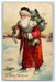 c1910 Christmas Old World Santa Gel Gold Gilt Bells Staff White Postcard