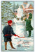 c1910's Christmas Children Santa Snowman Holly Berries Embossed Antique Postcard