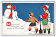 c1910's Christmas Girls Shovel Snowman Winter Snow Embossed Antique Postcard