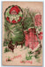 c1910's Christmas Greetings Deer Santa Head Whreat Winter Antique Postcard