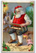 c1910's Christmas Santa Claus Hammer Fixing Sled Holly Candles Embossed Postcard