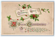 c1910's Christmas Wishes Message Holly Book John Winsch Artist Signed Postcard