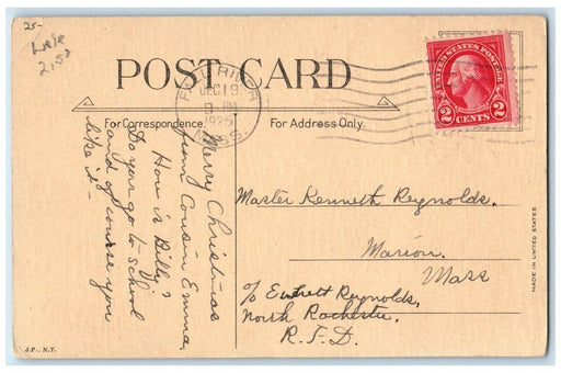 • 1925 Christmas Santa Claus Little Girl Sack Of Toys Fall River MA Postcard