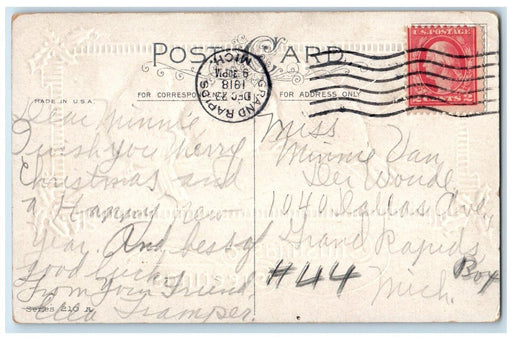 • 1918 Christmas Greetings Song Birds Holly Berries Grand Rapids MI Postcard