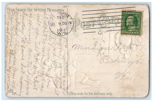 • c1910's Christmas Day Message Qoutes Holly Berries Embossed Antique Postcard
