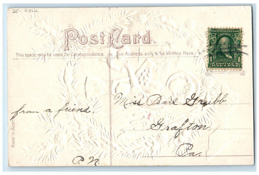 • 1907 Christmas Greetings Harp Holly Berries Clapsaddle Embossed Antique Postcard