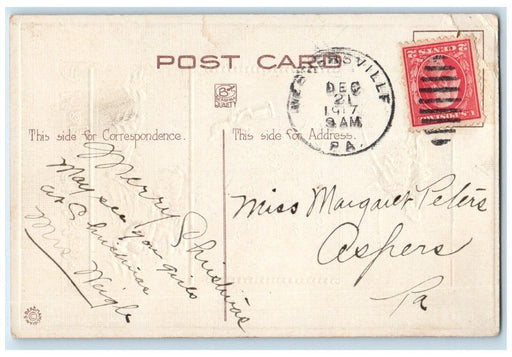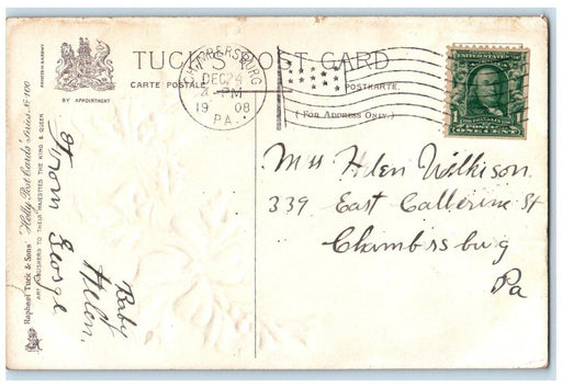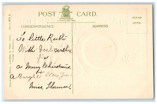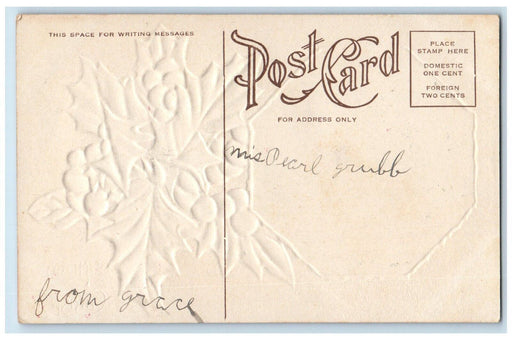 • 1907 Christmas Holly Berries Airbrushed Embossed Posted Antique Postcard