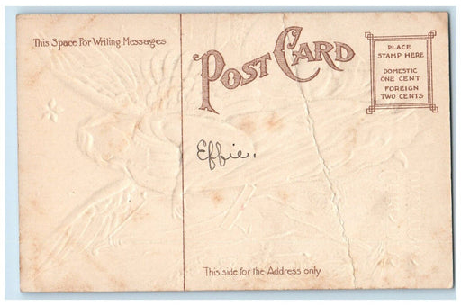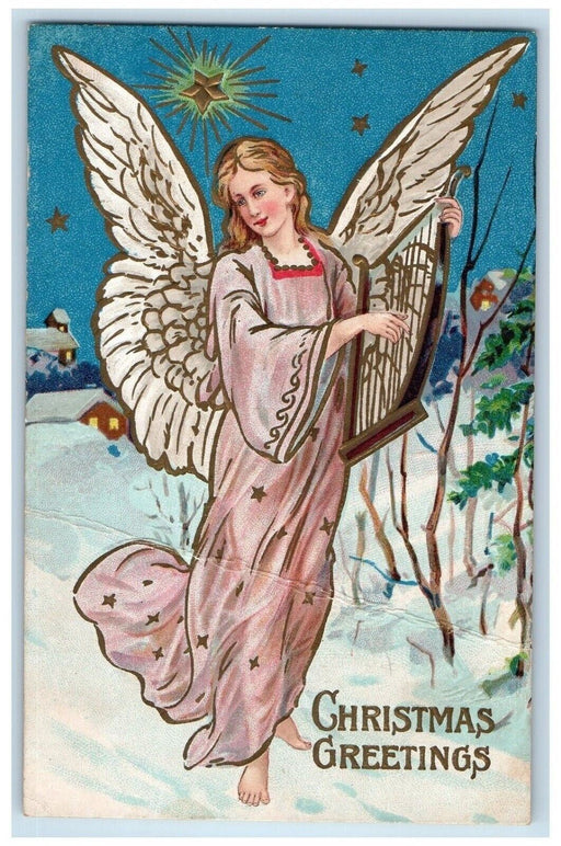 • c1910's Christmas Greetings Angel Lyre Stars Embossed Unposted Antique Postcard