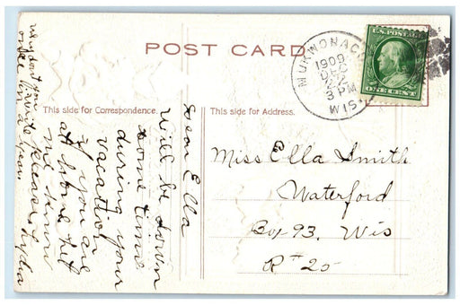 • c1910's Christmas Greetings Holly Berries Plate Mug Embossed Antique Postcard