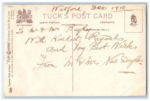 • 1908 Christmas Pretty Angel Head Holly Berries Ribbon Tuck's Embossed Postcard