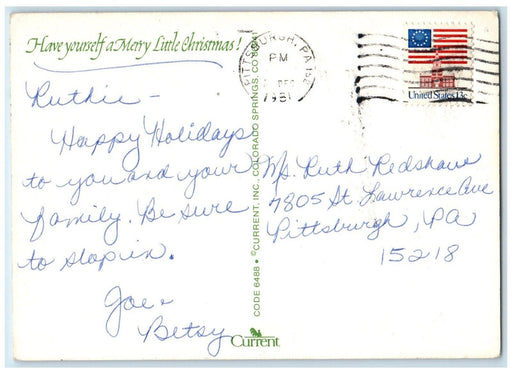 • 1981 Christmas Tree Balls Mushroom Rope Hanging Mouse Posted Antique Postcard