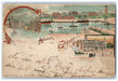 1902 Greetings from Esbjerg Denmark Torvet Steamboat Theatre Multiview Postcard