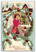 1912 Christmas Tree Pine Cone Angel Children Parsonsfield Maine ME Silk Postcard