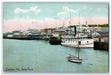 1912 Waterfront Sailboat Passenger Boat Dock Buildings Calais Maine ME Postcard