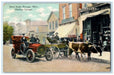 1909 Street Scene Classic Car Newaygo Cow Horseless Carriage Michigan Postcard