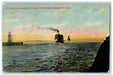 1932 Passenger Boat Leaving For Chicago Harbor Scene Michigan City IN Postcard