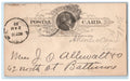 1887 Miss J.O. Allewaet Tarboro Nebraska NE Baltimore MD Postal Card
