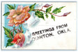c1910's Greetings From Quinton Oklahoma OK Flowers Embossed Glitter Postcard