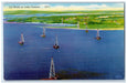 c1950's Oil Wells Derricks in Lake Texoma Texas and Oklahoma OK Vintage Postcard