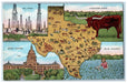 c1940's Texas State Map Multiview Oil Field Longhorn Steer TX Unposted Postcard